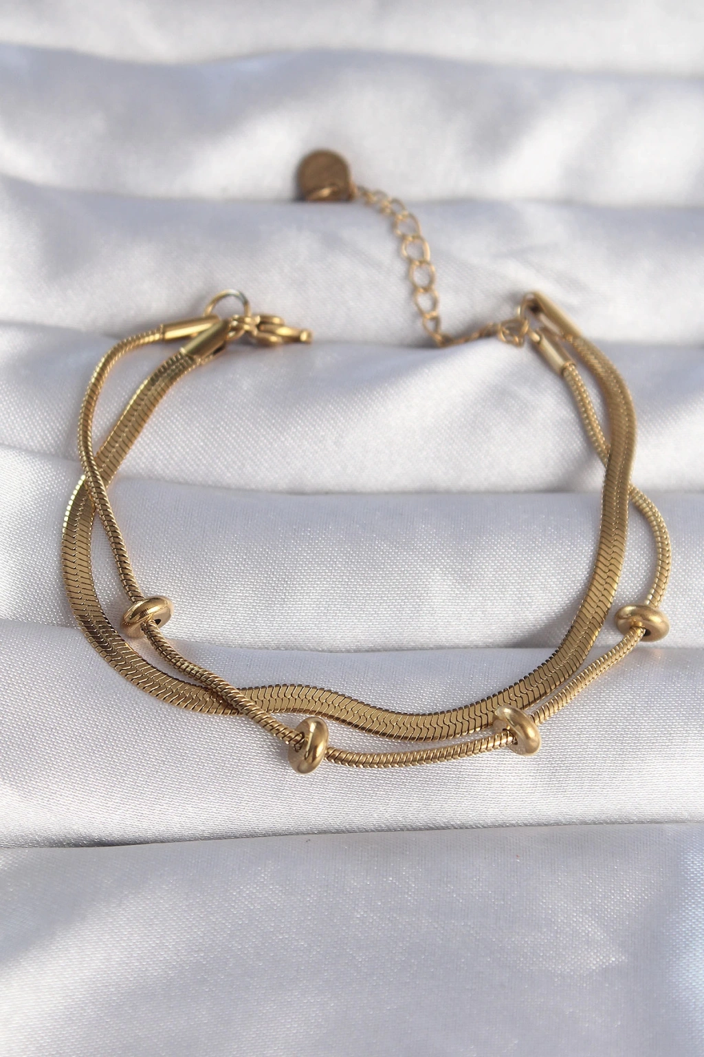 316L Çelik Gold Renk İtalyan Çift Zincirli Bileklik