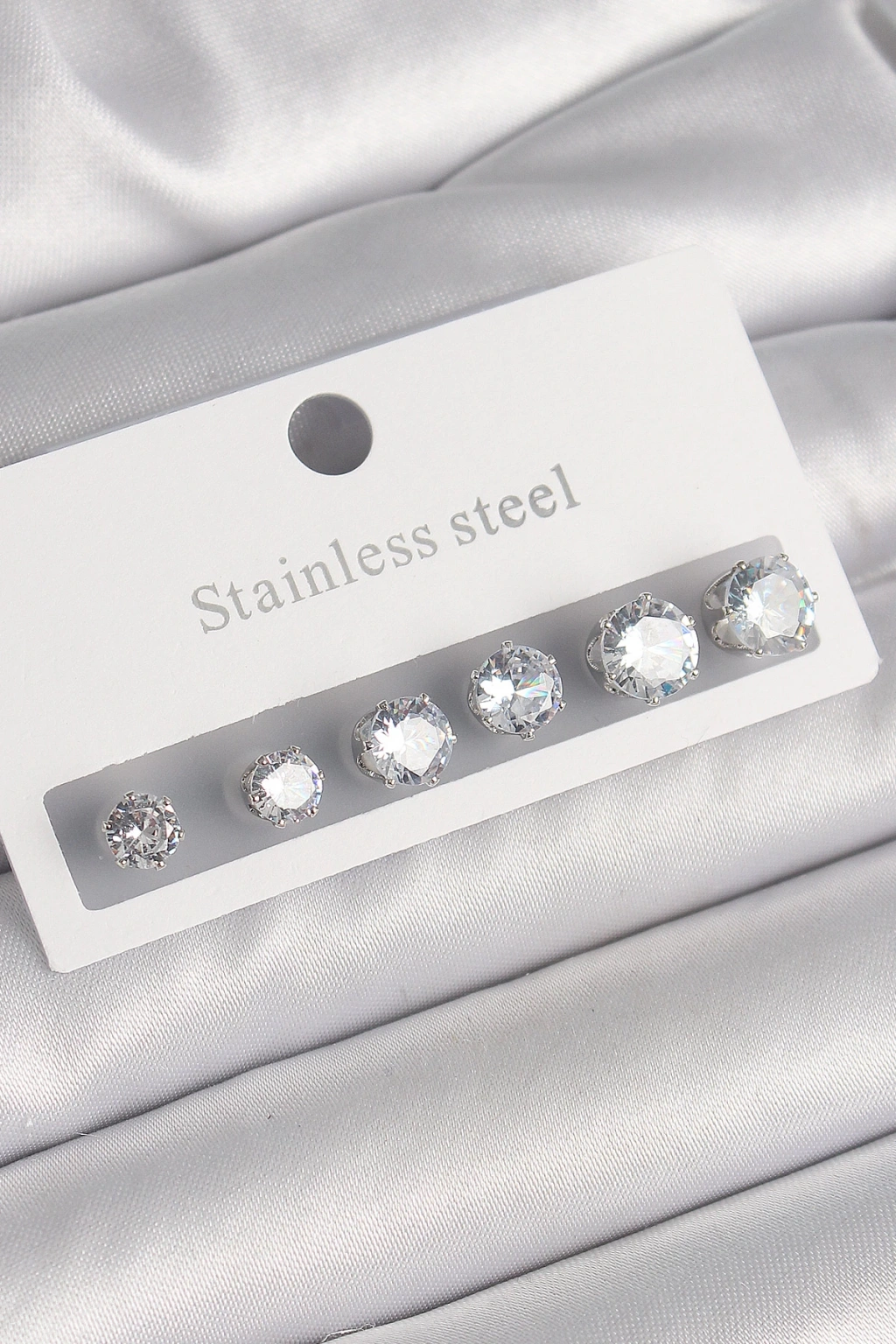 Gümüş Renk 6'lı Pirinç Küpe Seti