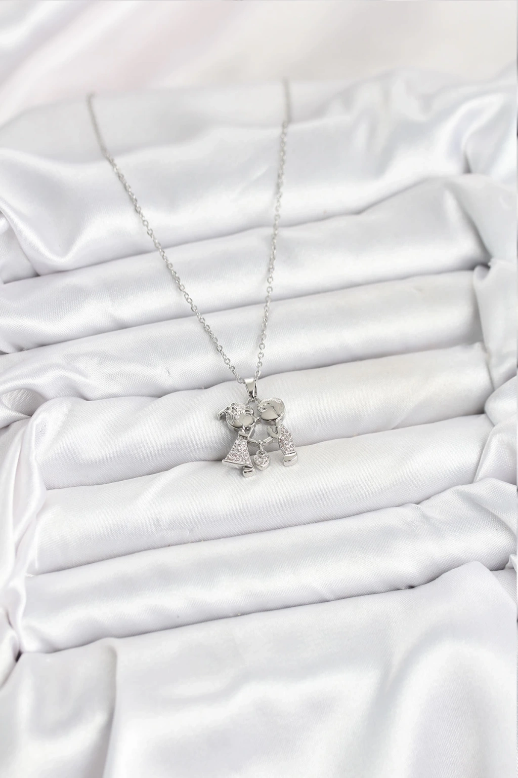316L Çelik Zincir Gümüş Renk Melek Model Kadın Kolye