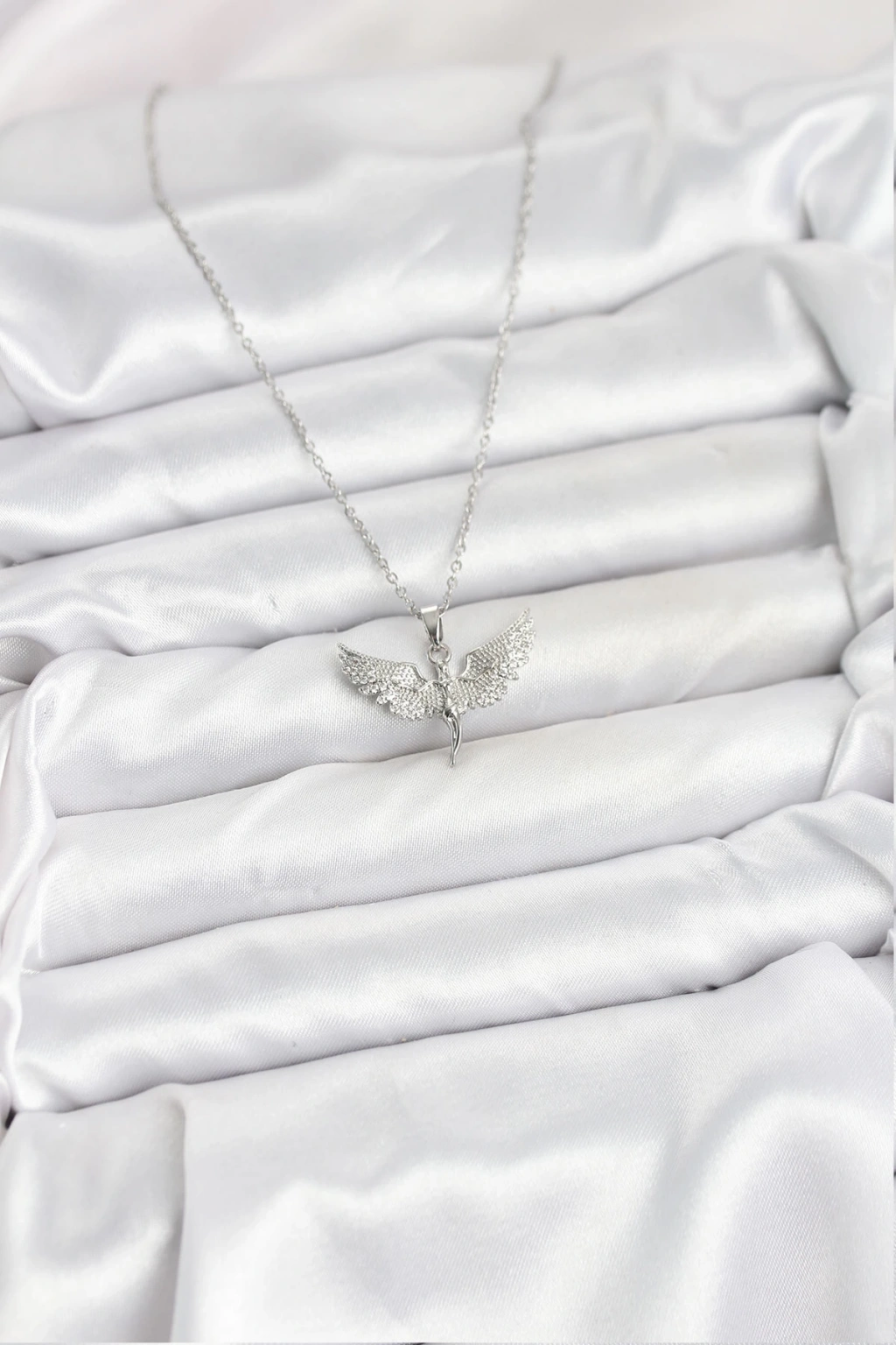316L Çelik Zincir Gümüş Renk Melek Model Kadın Kolye