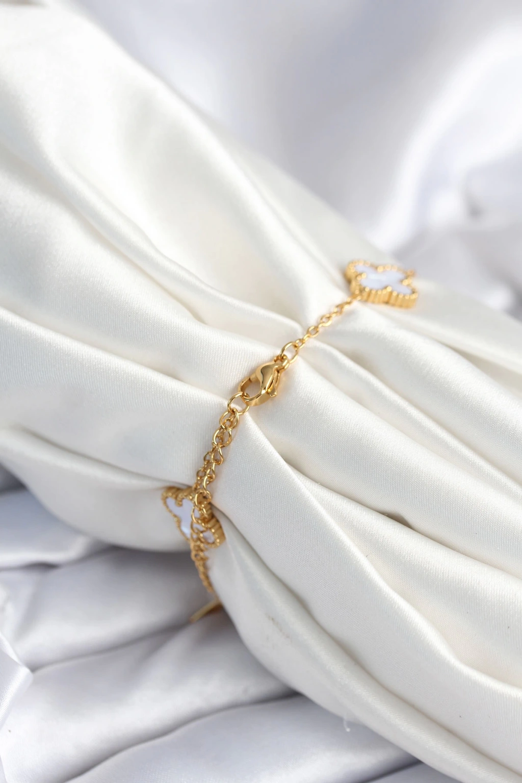 316L Çelik Zincir Zirkon Taşlı Yonca Beyaz Kadın Bileklik