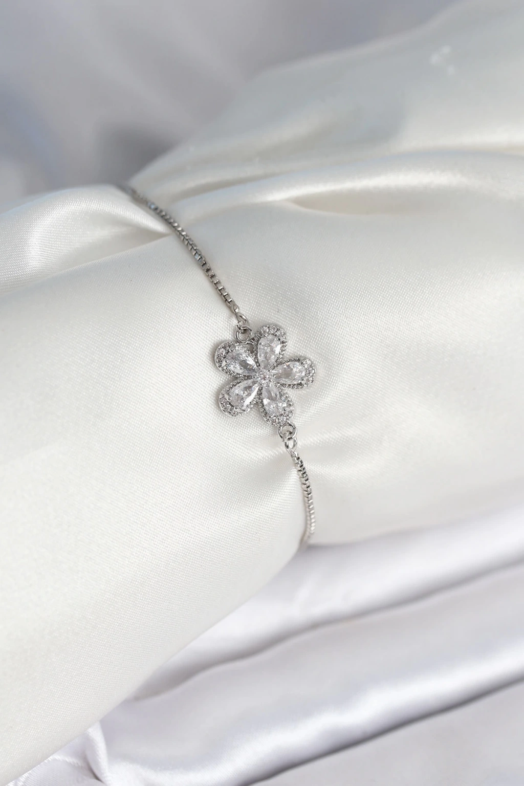 Çiçek Model Asansörlü Gümüş Renk Kadın Bileklik