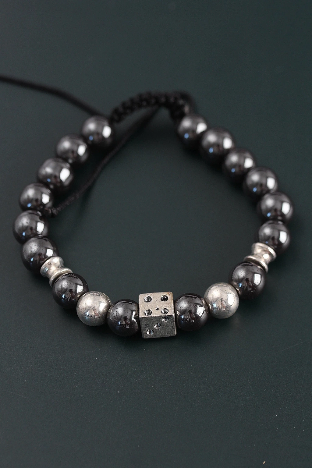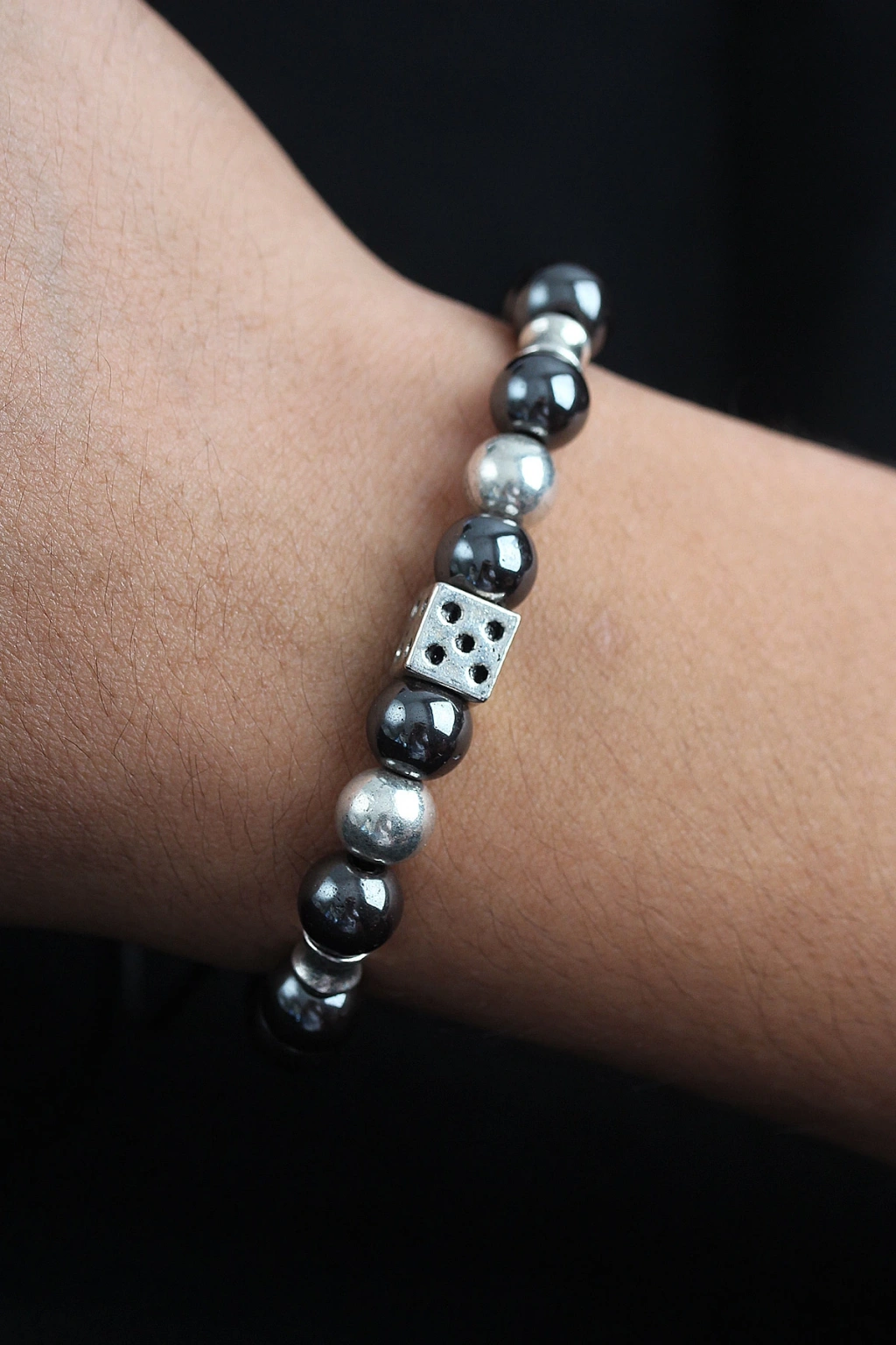 Doğal Taş Zar Model Gümüş Ve Füme Renk Asansörlü Erkek Bileklik