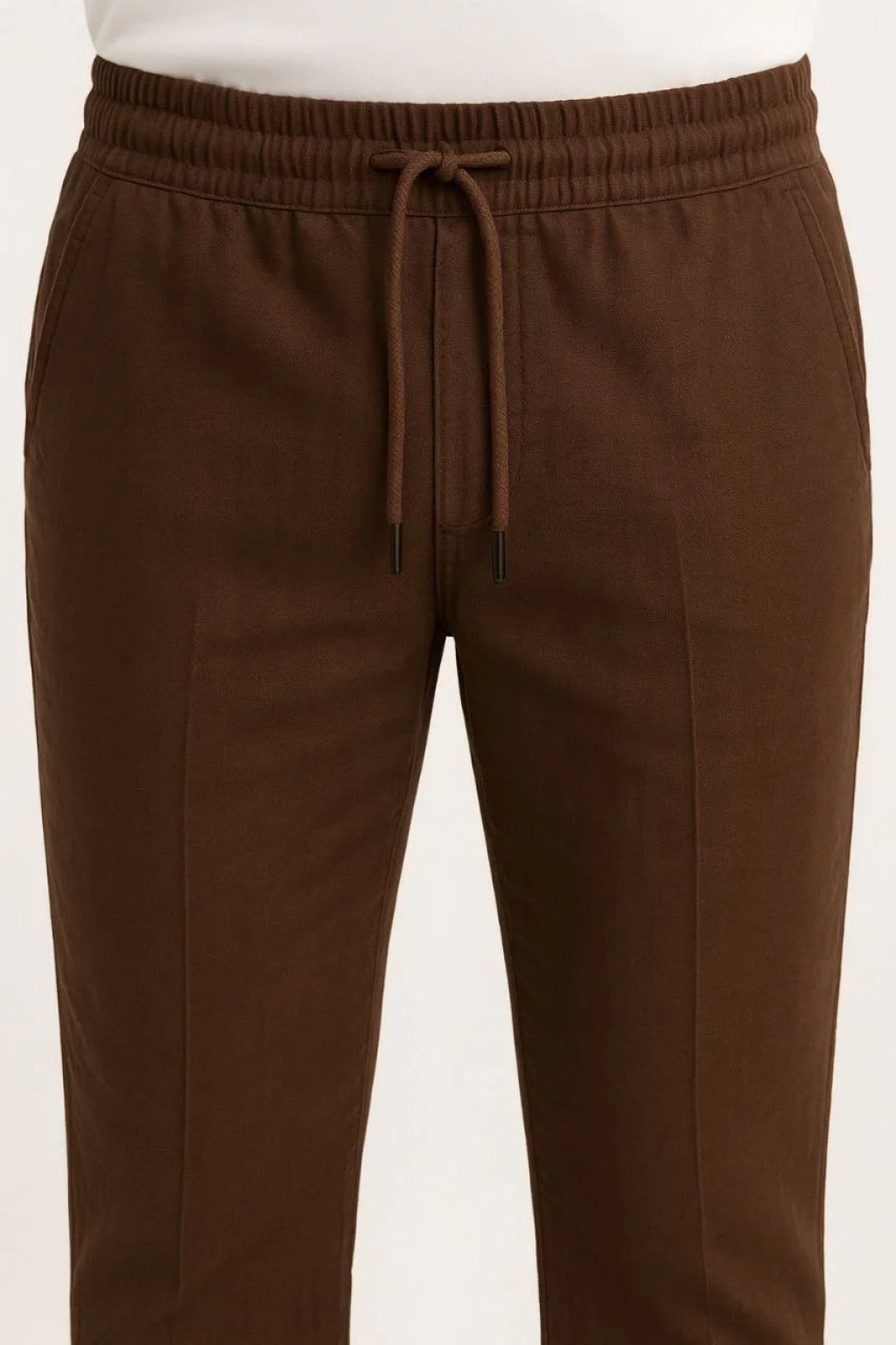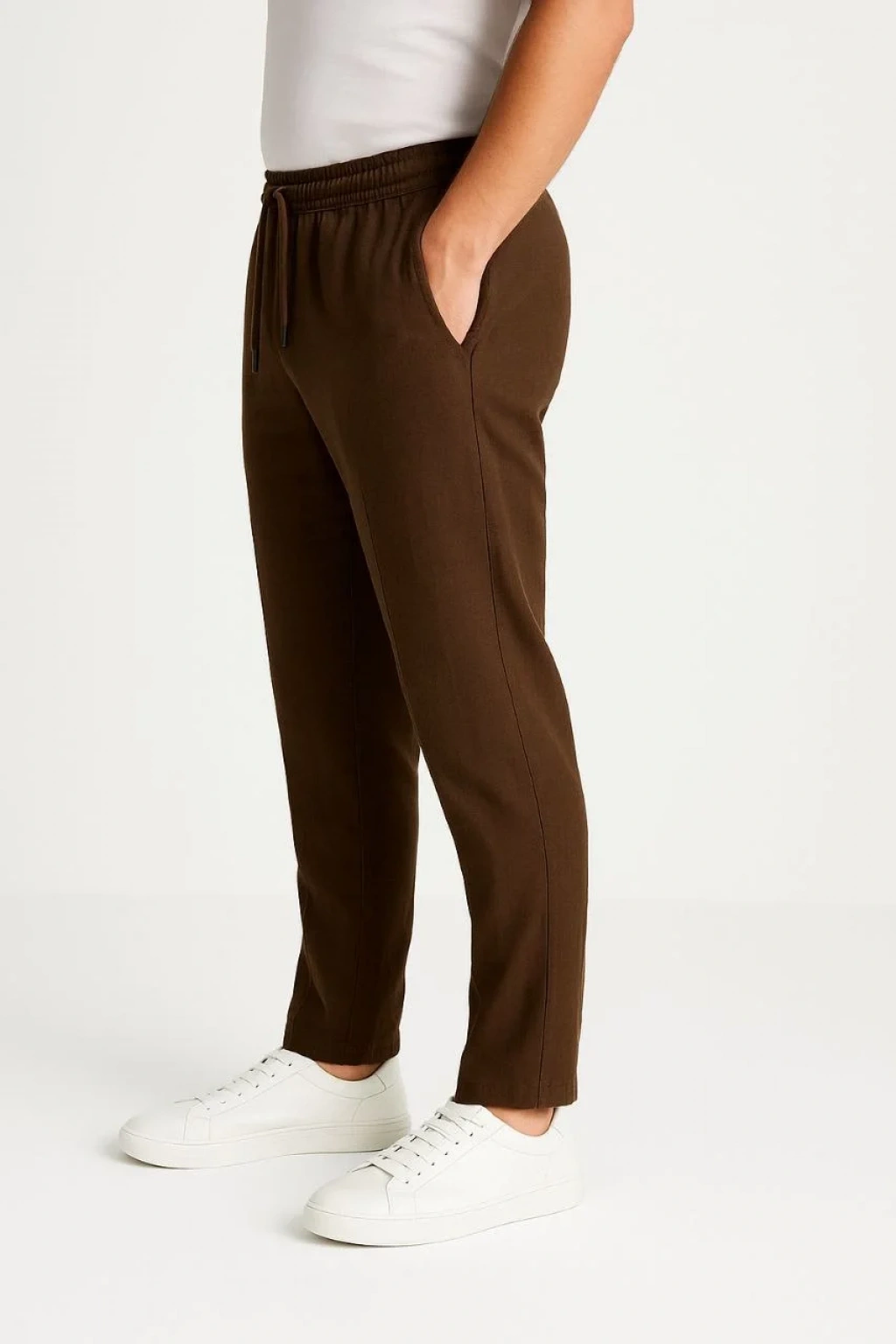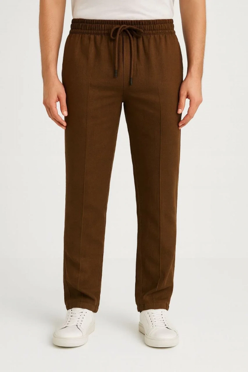 Erkek Keten Pantolon – Cepli, Beli Lastikli ve Bağcıklı, Nefes Alan Rahat Kalıp, Yazlık ve Baharlık Günlük Giyim, Şık & Konforlu Boru Paça Model - Kahverengi