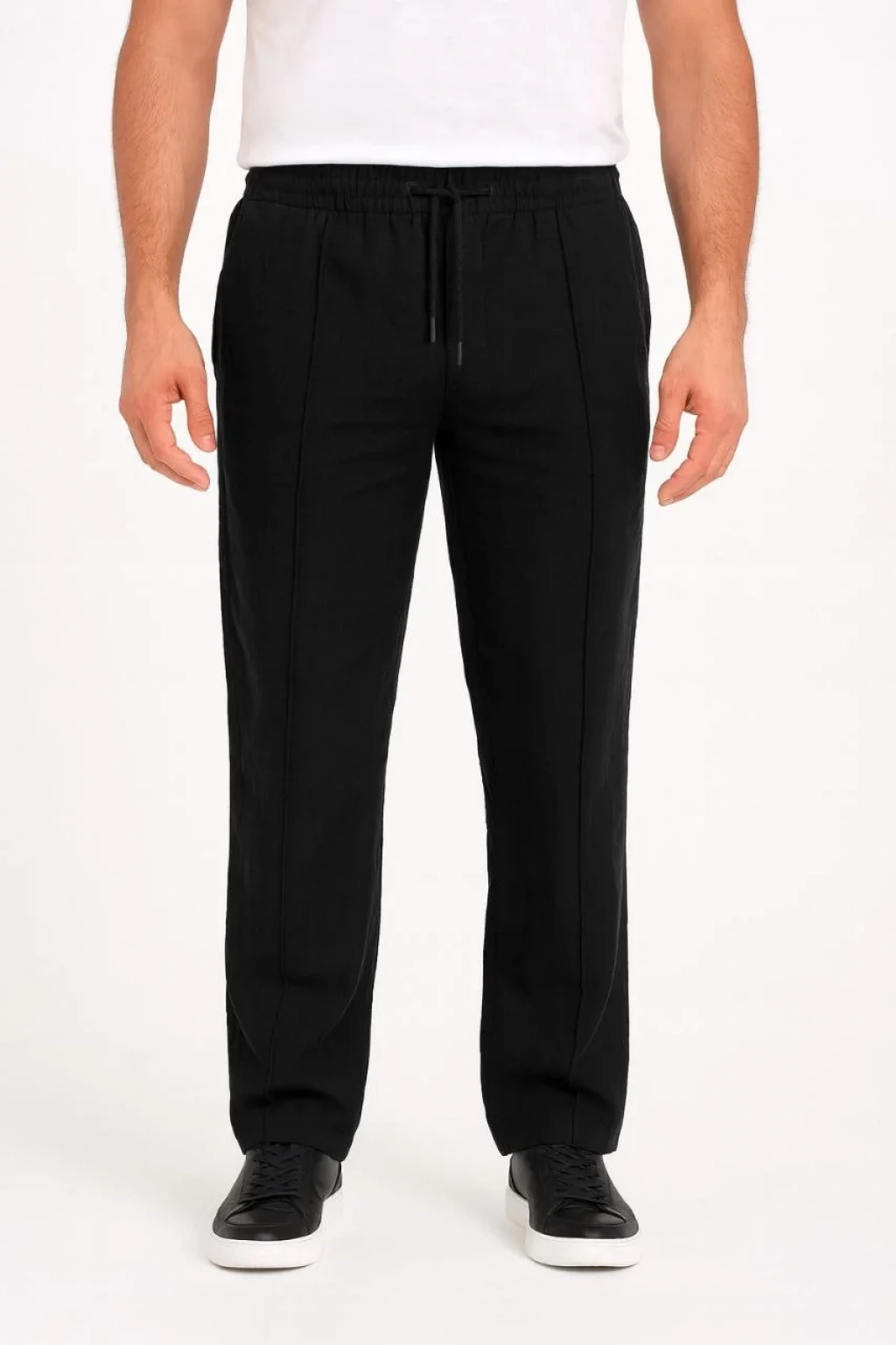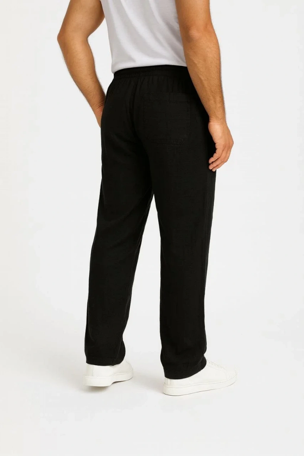 Erkek Keten Pantolon – Cepli, Beli Lastikli ve Bağcıklı, Nefes Alan Rahat Kalıp, Yazlık ve Baharlık Günlük Giyim, Şık & Konforlu Boru Paça Model - Siyah