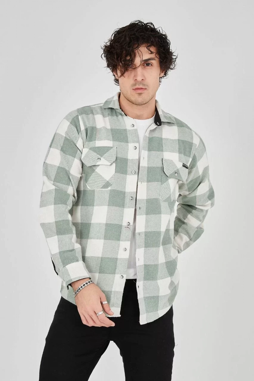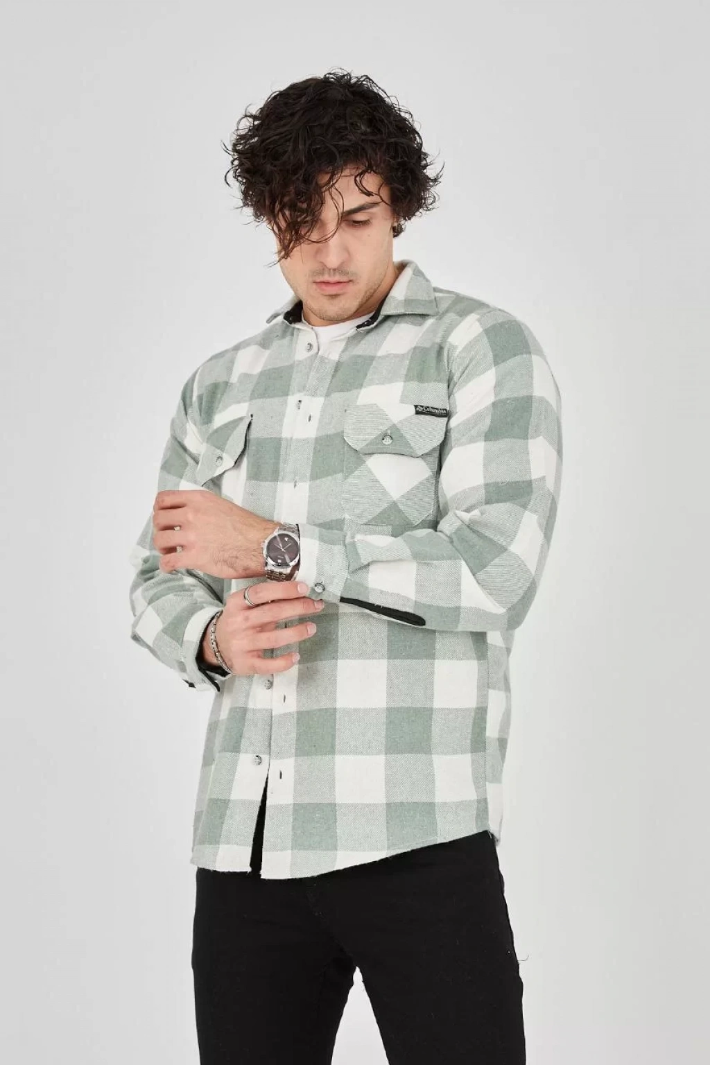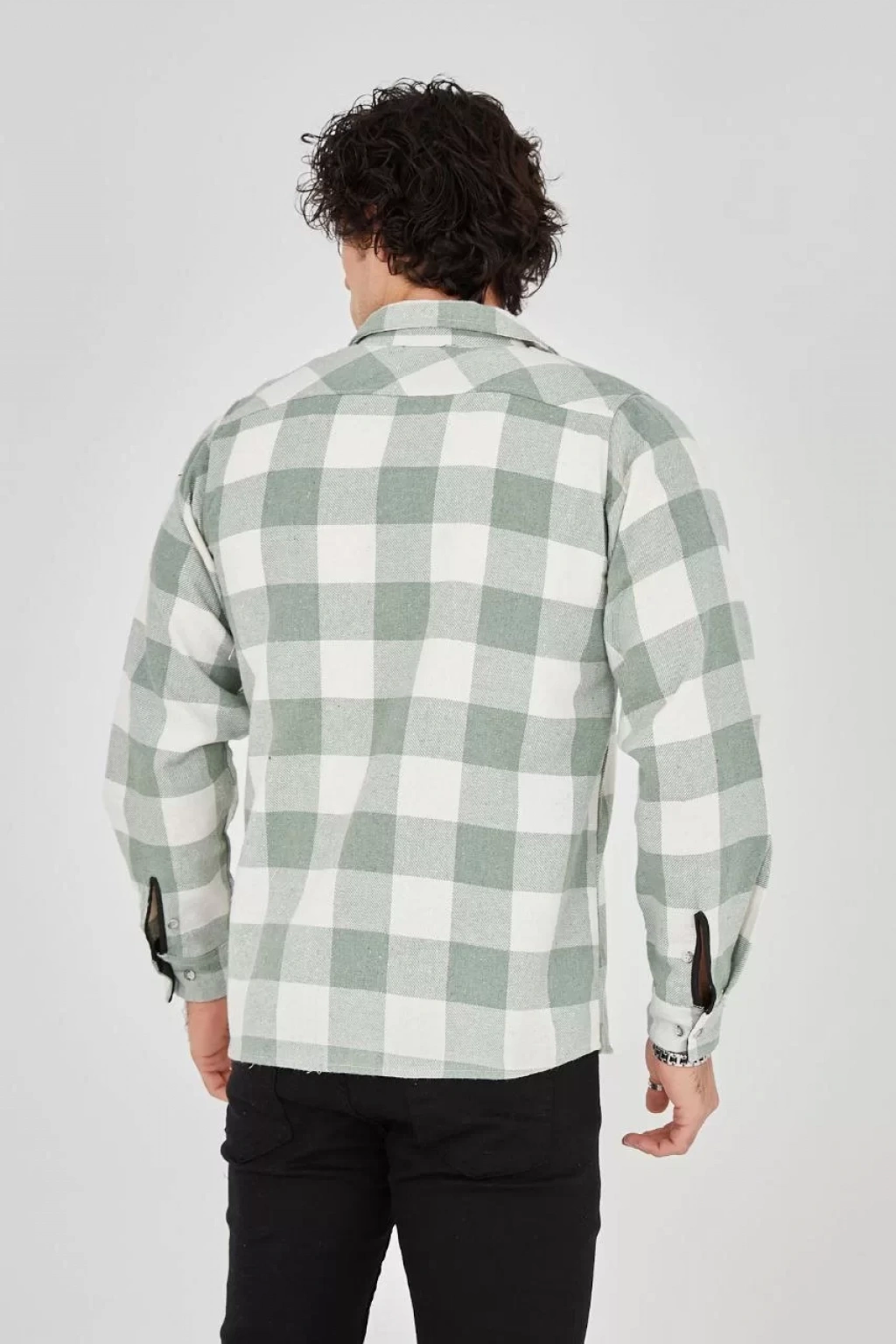 Erkek Uzun Kollu Oduncu Gömlek - Mint yeşili