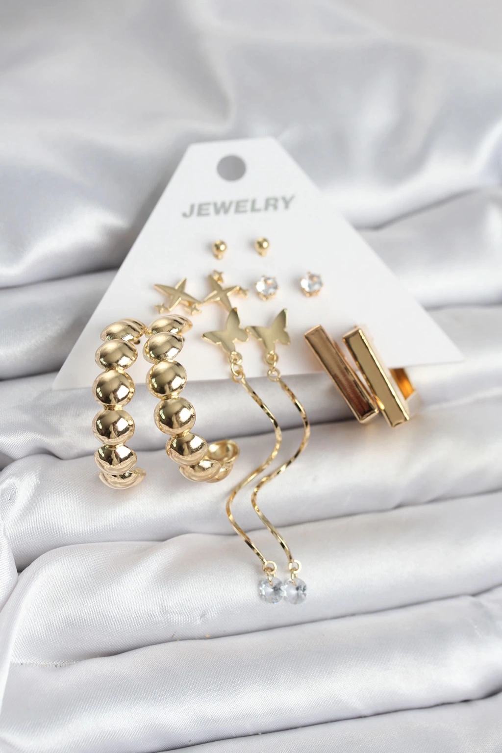 Gold Renk Pirinç 6 Çift Kadın Küpe Seti
