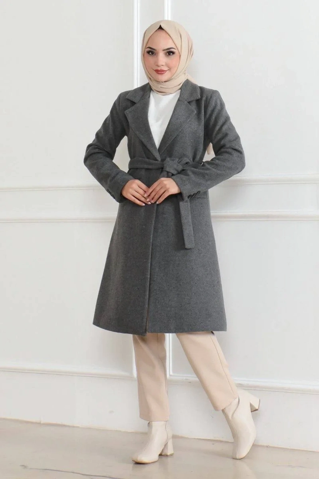 Ürün açıklamasıKış aylarında şıklığı ve sıcaklığı bir arada sunan bu uzun boy kaşe kaban, içi astarlı yapısıyla ekstra konfor sağlarken düğmeli tasarımıyla da modern bir görünüm sunar. %95 kaşe ve %5 akrilik kumaş karışımı ile dayanıklı ve sıcak tutan bu kaban, tesettür giyime uygun olarak tasarlanmıştır. Kruvaze yaka ve beldeki ayarlanabilir kuşak detayı ile vücut hatlarını zarifçe öne çıkarırken, öndeki düğme detayları sayesinde klasik bir şıklık katar. Geniş koleksiyon seçenekleriyle hem günlük hem de özel gün kombinlerinizi tamamlayacak bu kaban, kış gardırobunuzun vazgeçilmezi olacak.