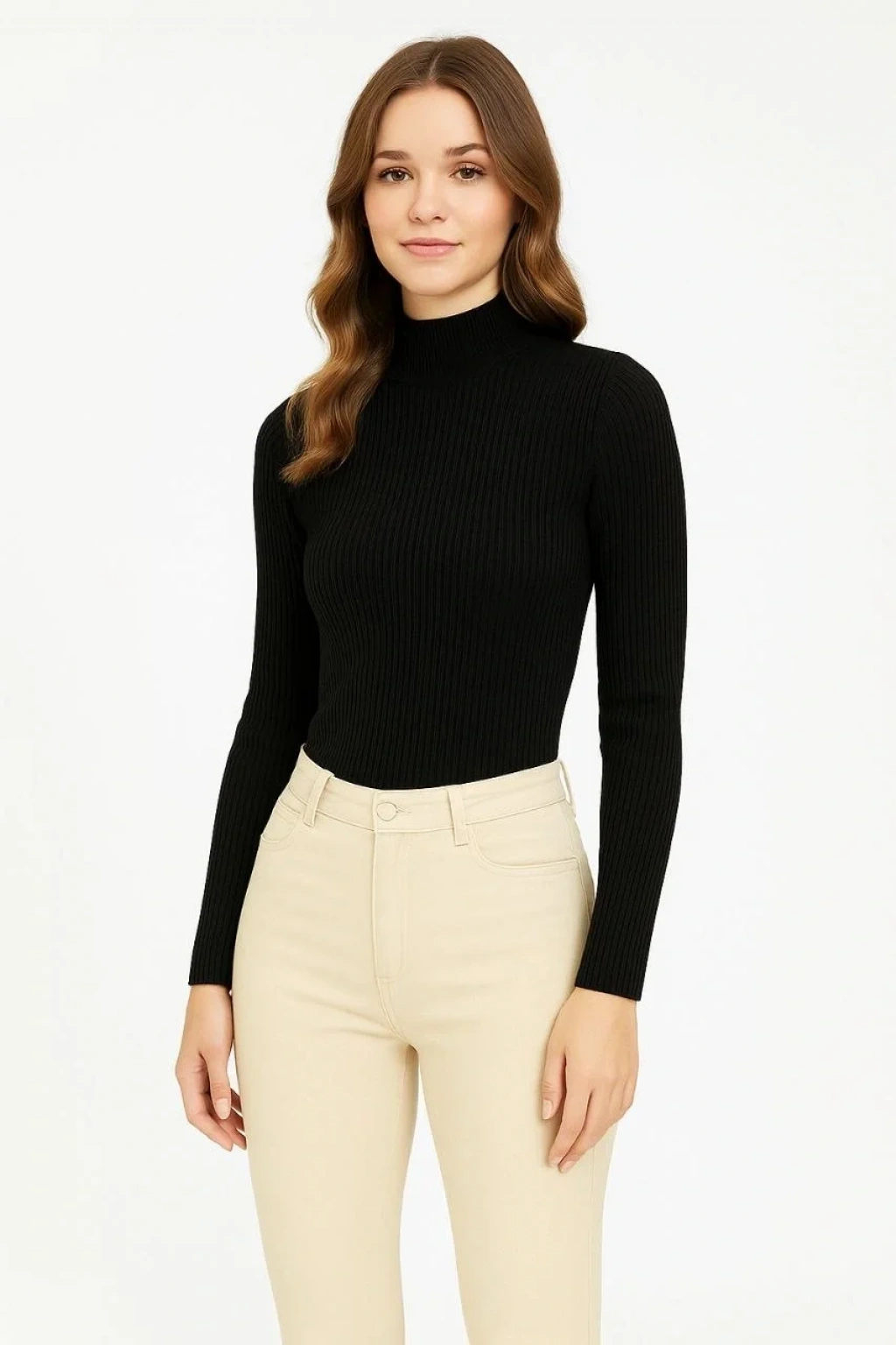 Kadın Yarım Boğaz Triko Kazak yumuşak dokulu Pamuklu ince Dokuma, uzun kollu Rahat Regular kalıp - Gri