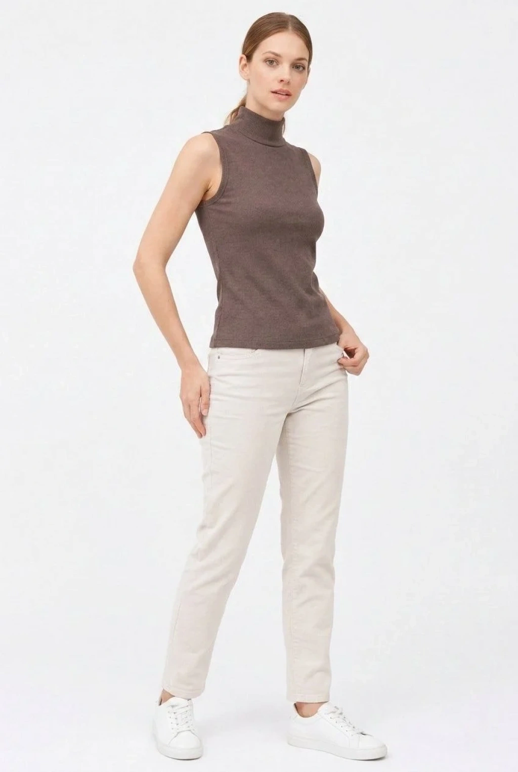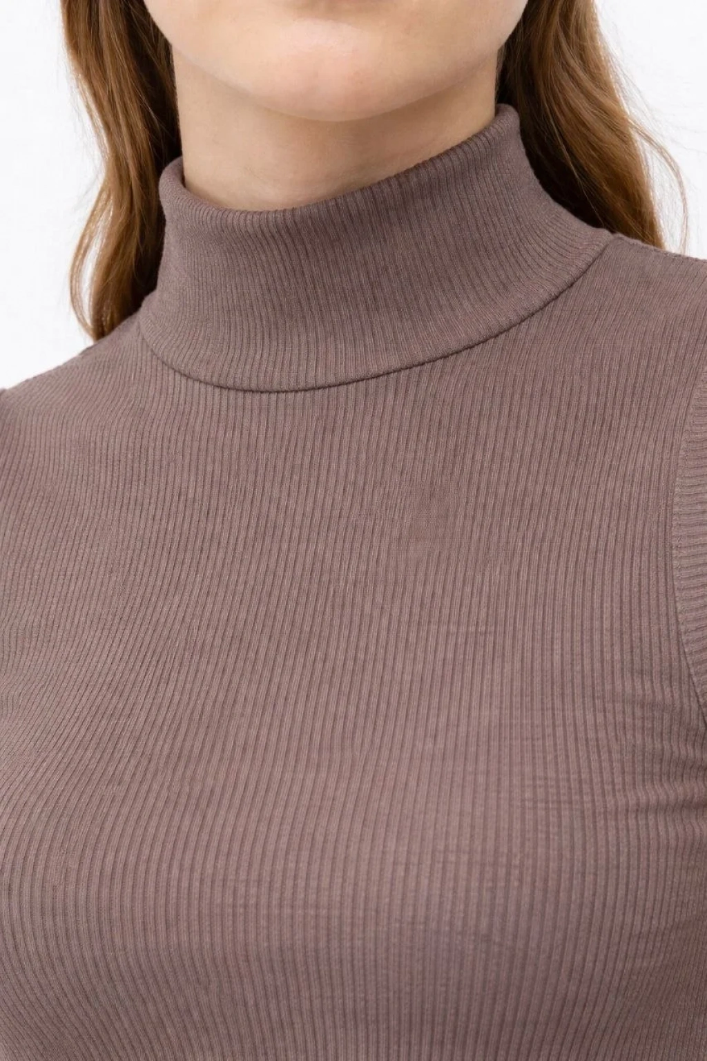 Kadın Yarım Balıkçı Yaka Fitilli Kaşkorse Atlet Basic Şık Bluz Badi - Kahverengi