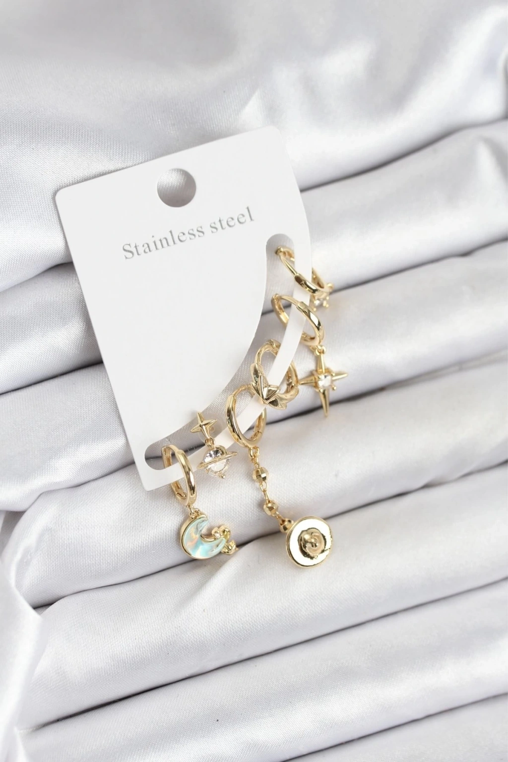 Pirinç Gold Renk Ay Model Kadın Set Küpe
