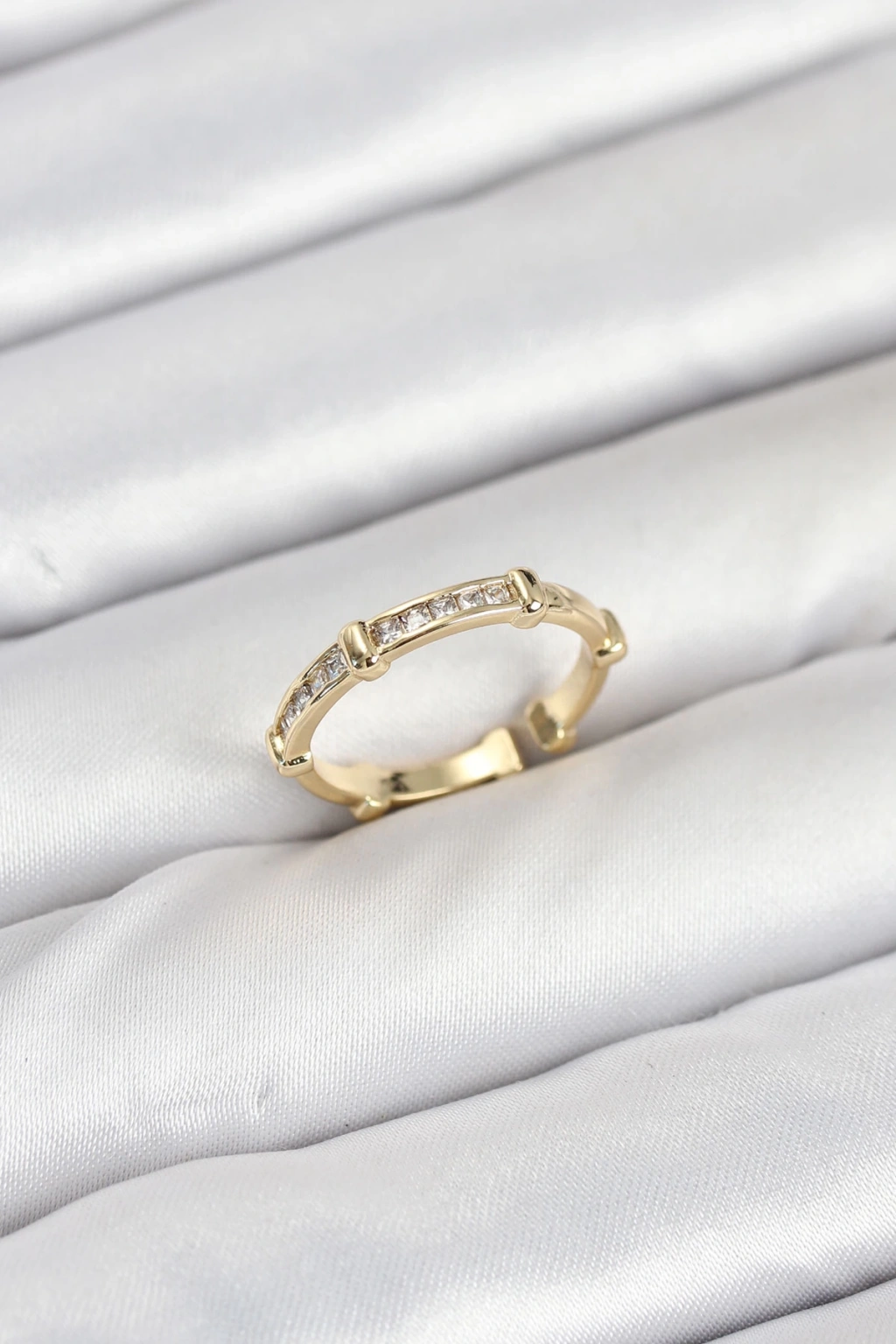 Pirinç Gold Renk Kemik Model Zirkon Taşlı Kadın Yüzük