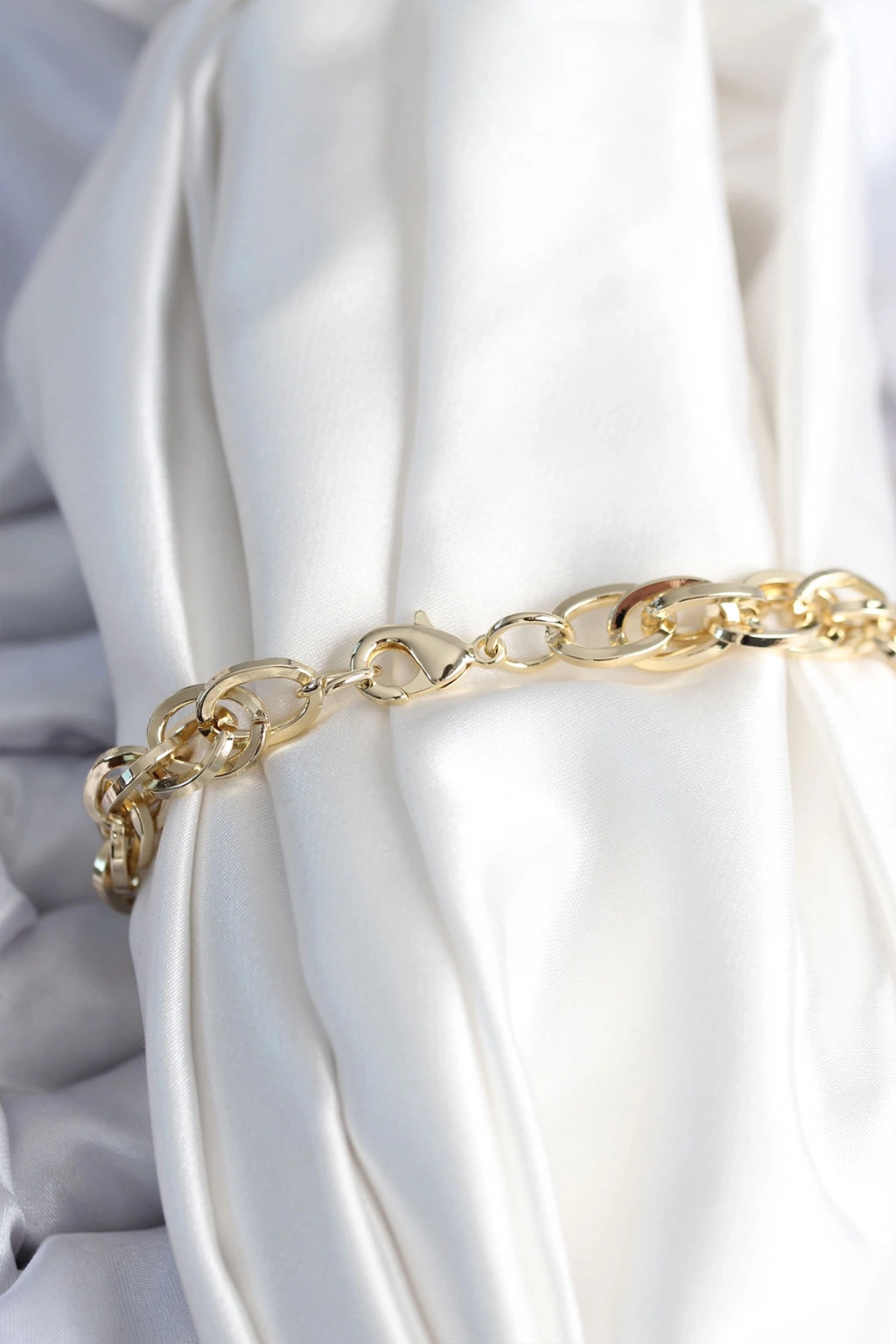 Pirinç Gold Renk Zincir Model Kadın Bileklik