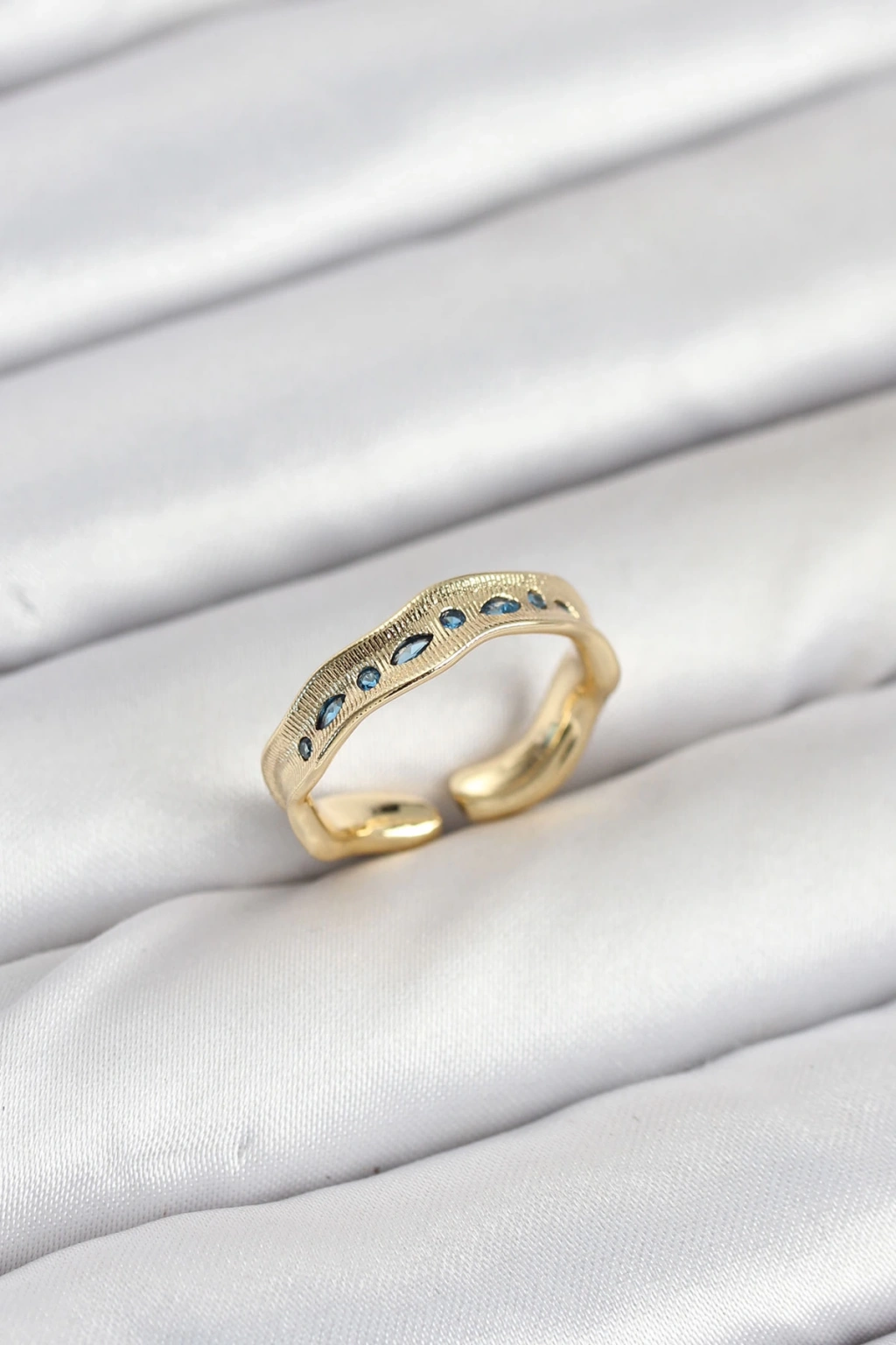 Pirinç Gold Renk Zirkon Taşlı Vintage Kadın Yüzük