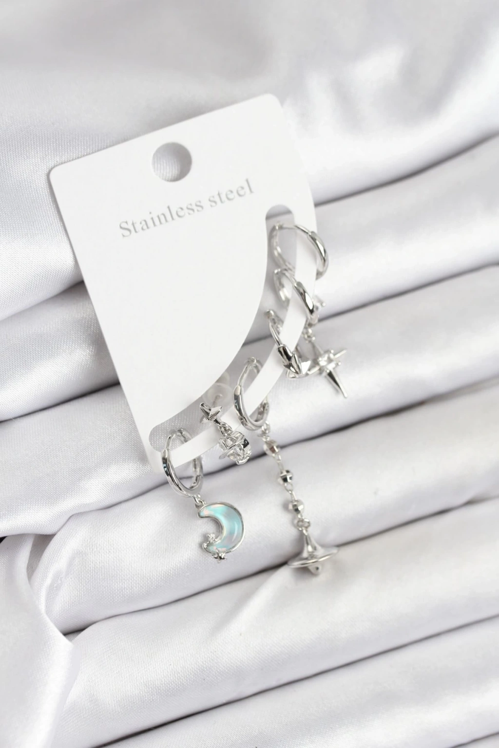 Pirinç Gümüş Renk Ay Model Kadın Set Küpe