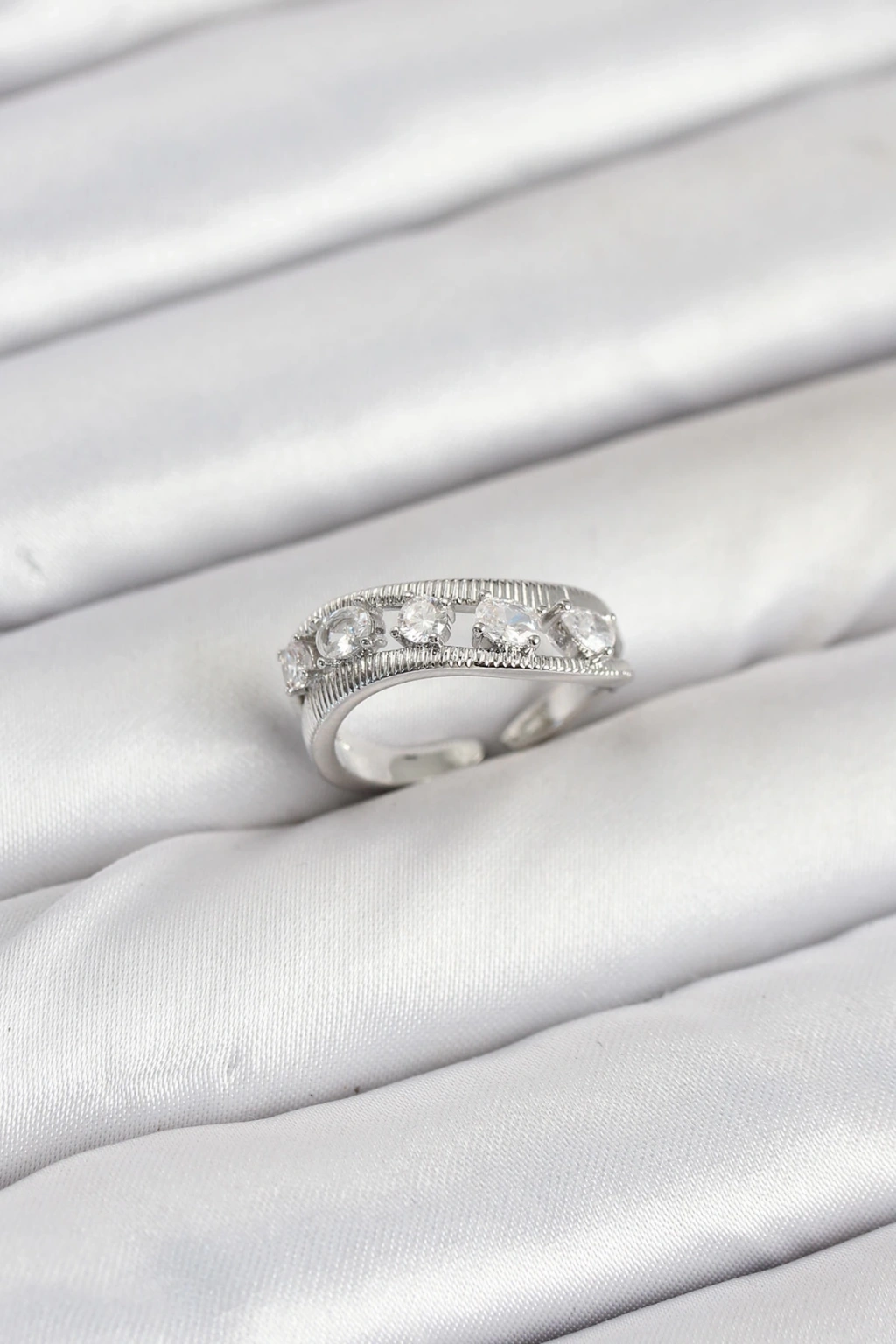 Pirinç Gümüş Renk Zirkon Taşlı Kadın Yüzük