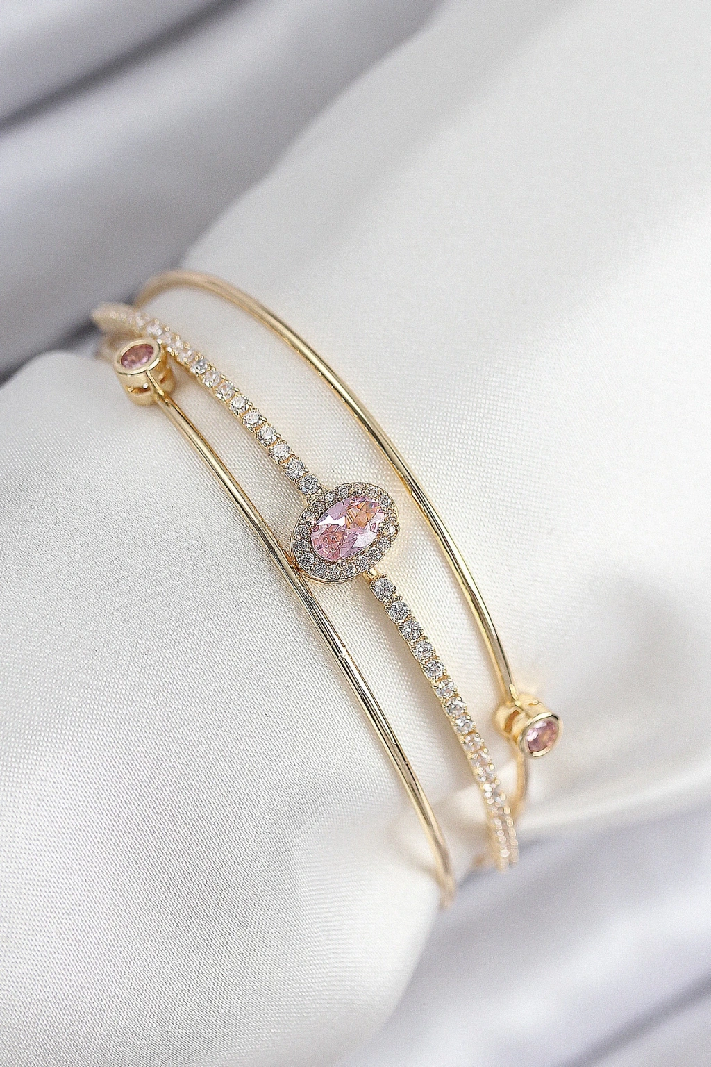 Pirinç Zirkon Taşlı Baget Model Gold Renk Kadın Bileklik