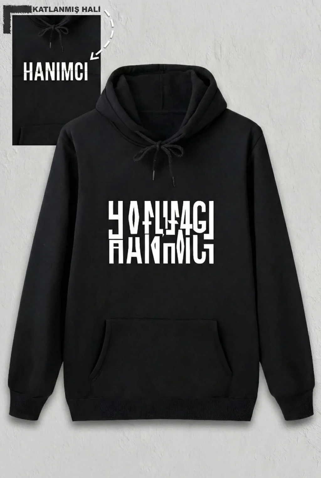 Sevgililer Günü Özel Kapüşonlu Hanımcı Baskılı Oversize Sweatshirt - Siyah