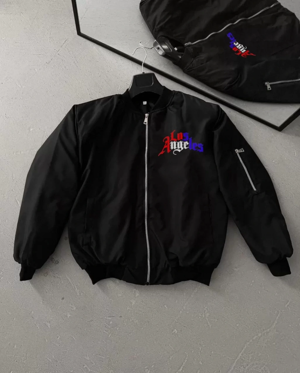 ERKEK Los Angeles Siyah Bomber Mont – Fermuarlı, Cepli, Kapitone Astarlı, Bahar ve Kışlık Ceket- Siyah